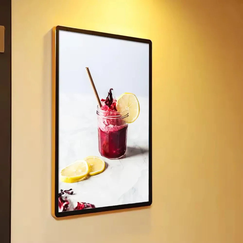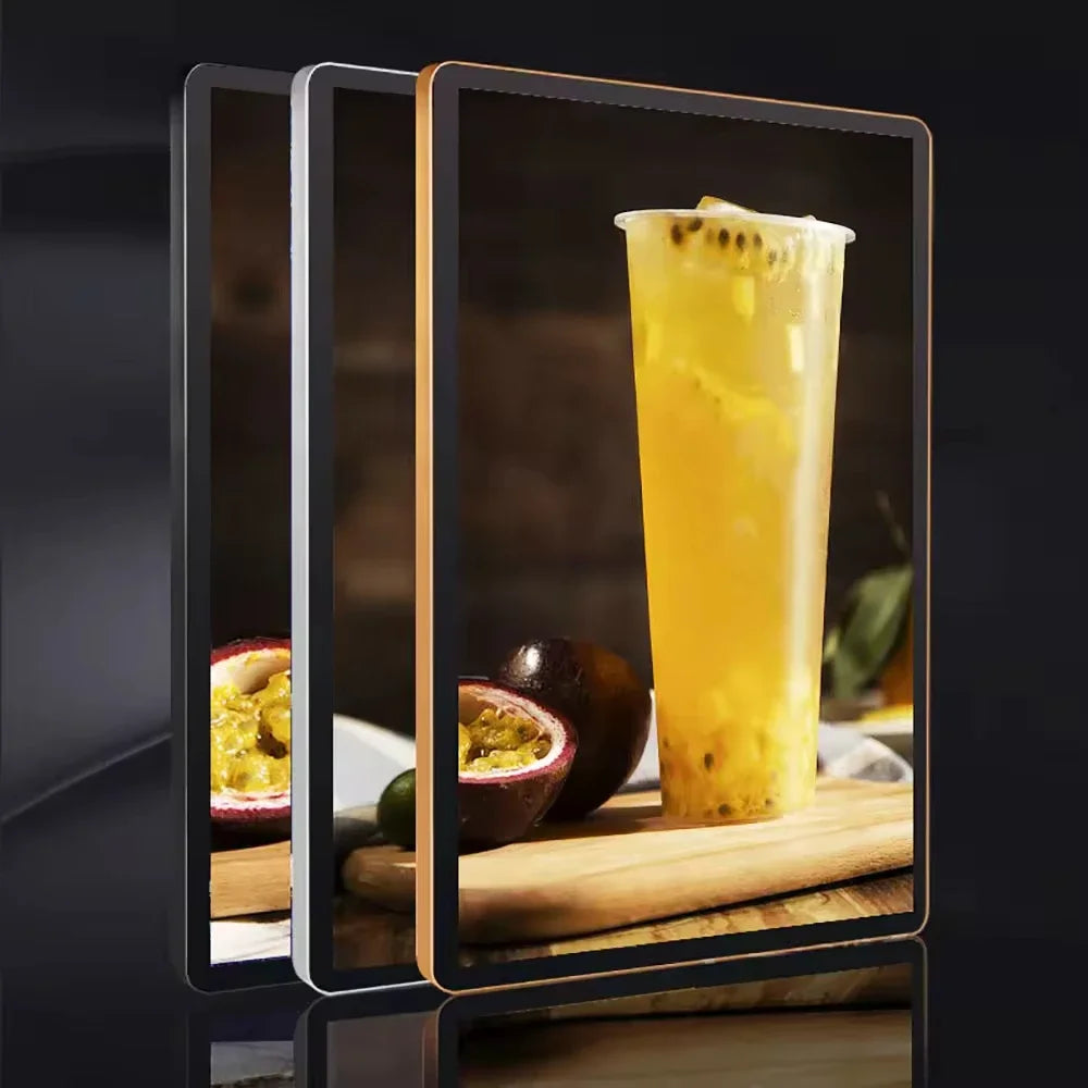 Ultra-thin LED Light Box Aluminum Frame Tempered Glass Magnetic Round Corner Light Box Restaurant Menu Board Advertising Signs